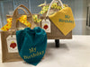Two bags of bones and one bag of bits with an over-the-collar bandana in a jute gift bag. This is perfect for a furry friend to celebrate the happiest of birthdays. All three flavors of our products will be included. Bandana will be harvest gold or teal, based on availability.... -