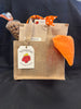 Treat your favorite pup with a Waggles gift bag featuring each of our three delicious flavors, peanut butter, sweet potato and chicken. Three bags of Waggies in either bones or WaggieBits in an attractive burlap bag with an orange Wag Rag to clean off muddy paws after rainy walks. -