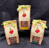 Our WaggieBits kibble in a special bag with a birthday-hat-wearing dog logo and celebratory bow. Available in your choice of flavors, each 8oz in weight. -