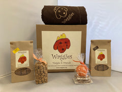 Also included are three bags of Waggies’ deliciously healthy peanut butter and chicken treats and a tennis ball paired with our two-fer packs. The perfect gift to welcome a new family pet or to say Happy Birthday. Write your sentiments in the comment box and a gift card will be included.